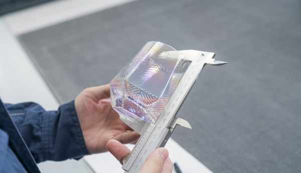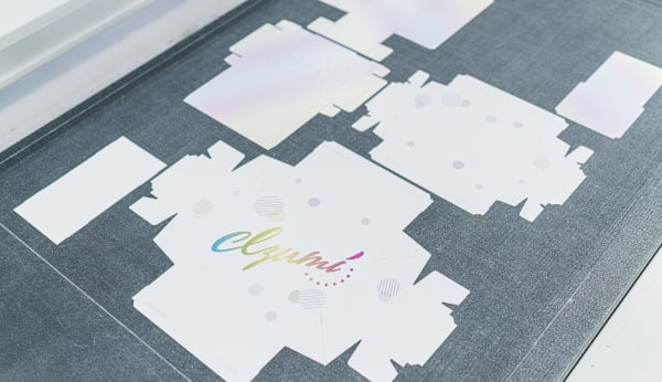 本番生産で使用する紙にダイレクトに印刷・表面加工ができ、立体にしてデザインイメージを確認することができます。