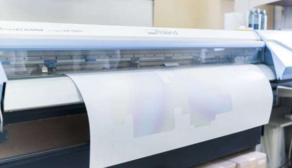 製作させていただいた無地サンプルにインクジェット出力でデザインをプリントすることが出来ます。